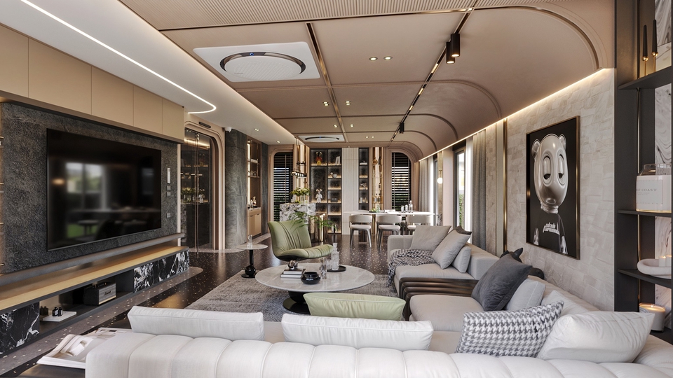 ดีไซน์ห้องนั่งเล่นสไตล์โมเดิร์นที่ลงตัวทั้งความสวยงามและความสะดวกสบาย